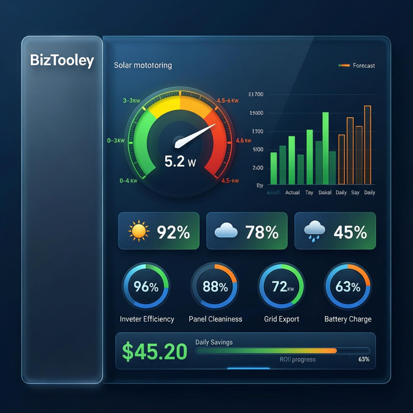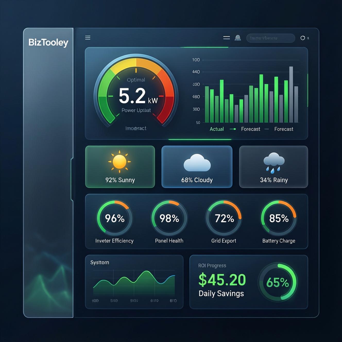 Welcome to the Solar Energy Dashboard – a comprehensive, fully-functional solar monitoring and management solution proudly developed by BizTooly. Whether you’re a homeowner tracking daily savings or a solar installer managing client systems, this dashboard provides everything you need to monitor, analyze, and optimize solar power generation in real-time.